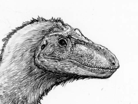 少し、プロポーションが大人っぽくなってきたが、頭部を除いた全身は毛に覆われている(あくまでも推測です)。中国で発見されたディロングが毛をまとっていたことから、身体が小さいときは毛が生えていたのではないかと考えられている。