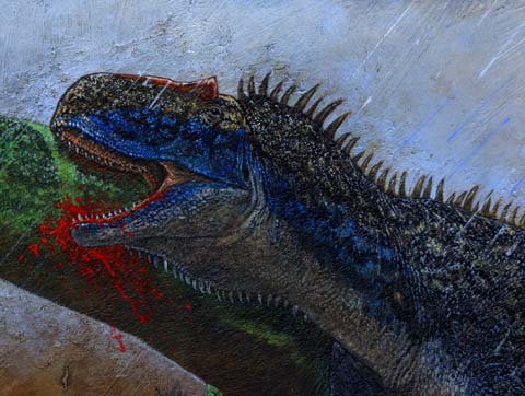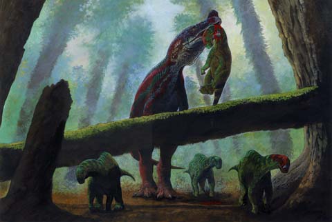 成体に比較すると、何倍もの体格差がある。まだまだ大型の肉食恐竜は危険な存在である。